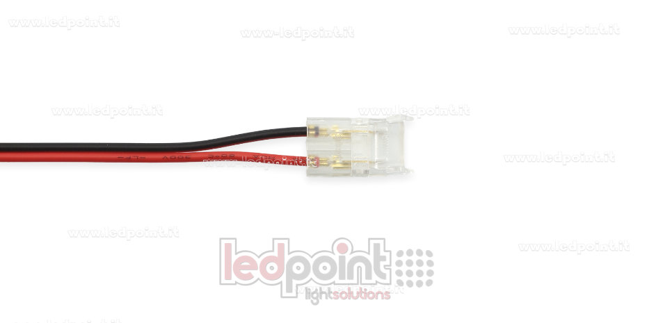 Conector con cable de 10cm, para tiras LED y COB de PCB de 8mm, 2 pines, versión reducida transparente.