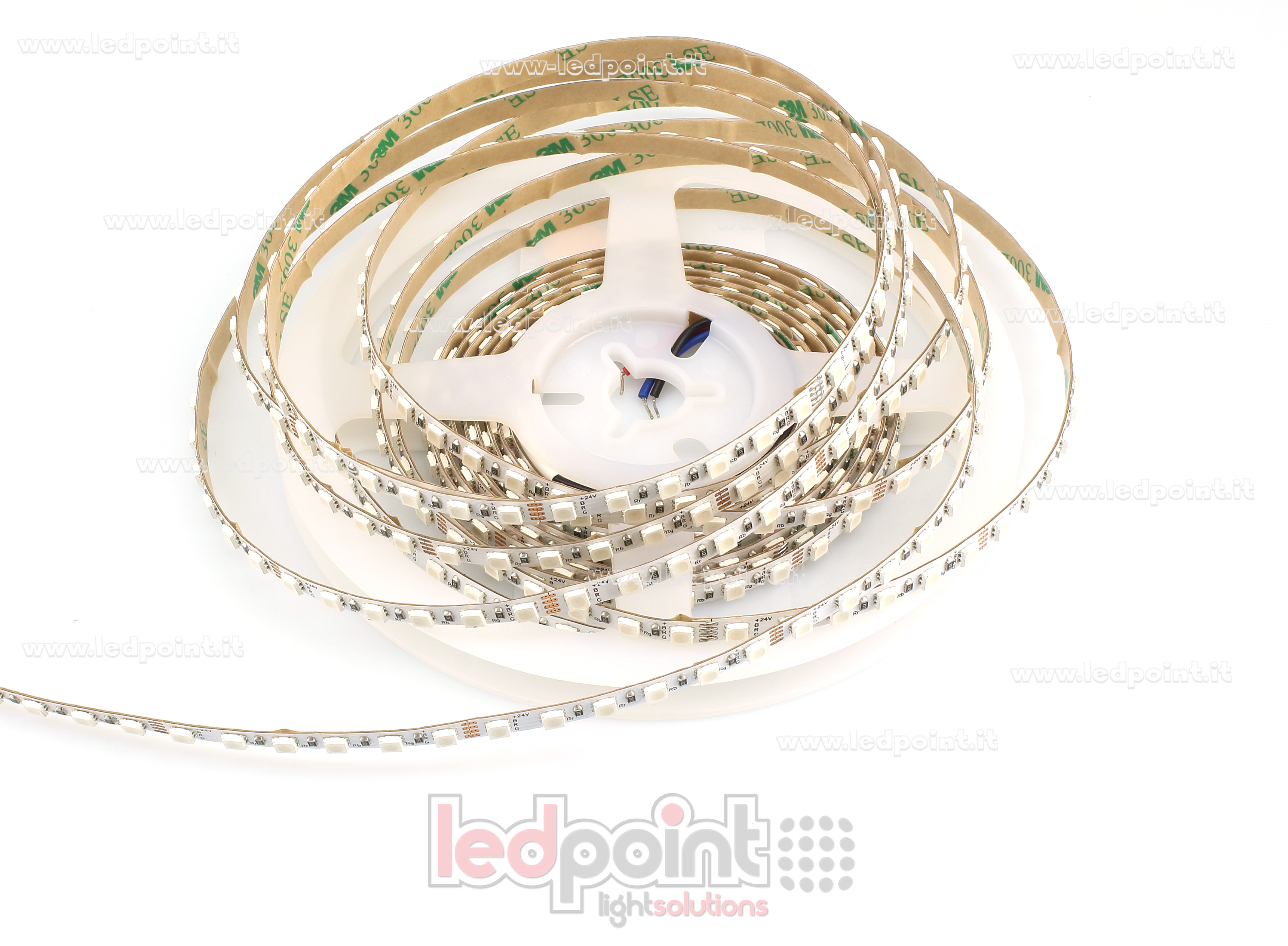 La tira led F52-RGB-120G12-W5 es flexible y cuenta con adhesivo de doble cara en la parte posterior para una instalación rápida también sobre las superficies curvas. Sus características son: